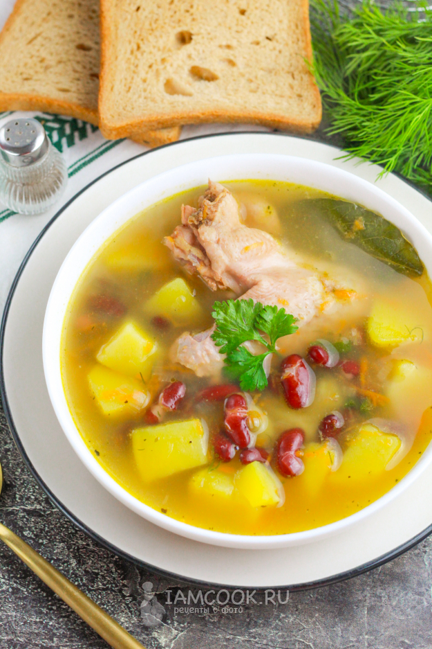 Попробуйте суп на вкус и разлейте его в глубокие тарелки. Суп с сухой красной фасолью и курицей готов!