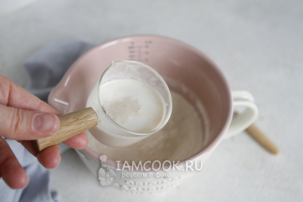 Минут через 15 вливаем опару.