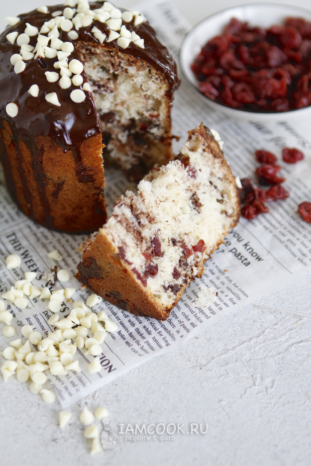 Шоколадный кулич с клюквой готов.