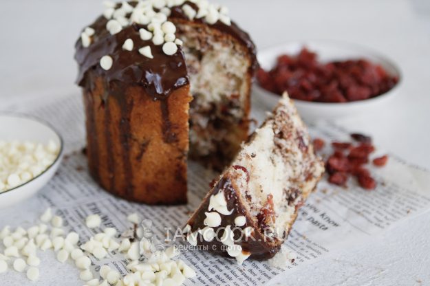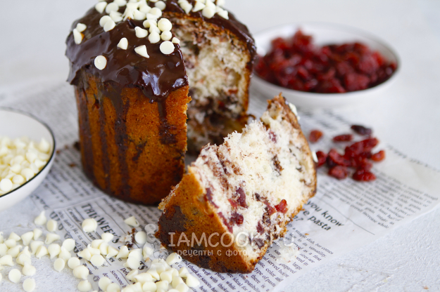 В этом рецепте я использовала итальянский темный шоколад в виде капель и клюкву, которую добавляют в куличи и панеттоне.