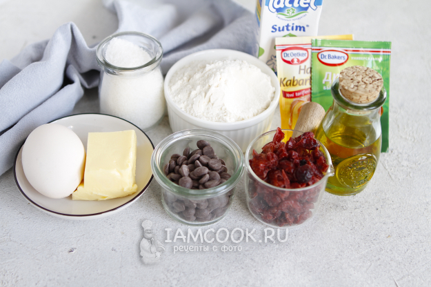 Все ингредиенты для приготовления шоколадного кулича с клюквой на Пасху - перед вами.