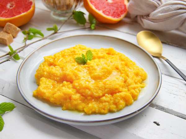 Соберите продукты для приготовления рассыпчатой пшенной каши с тыквой.