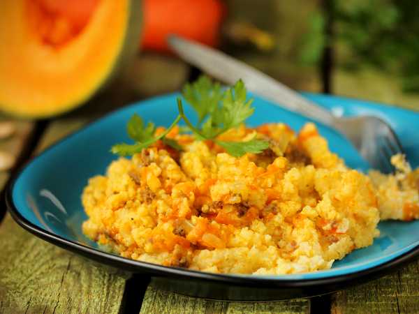 Рассыпчатая пшенная каша с тыквой готова. Подавайте кашу горячей со сливочным маслом.