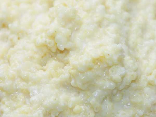 Когда вода впитается, влейте теплое молоко и продолжайте варить кашу под крышкой на тихом огне еще 10-15 минут. Во время варки перемешайте кашу. Нагрев должен быть минимальным.