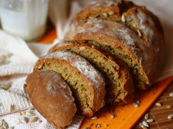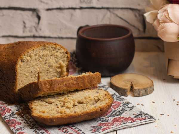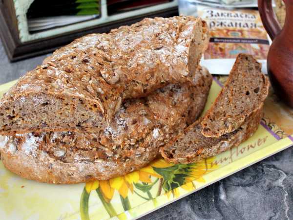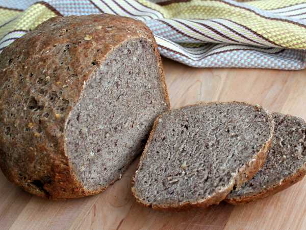 Высокий, пропеченный, ароматный, вкусный и полезный хлеб с семечками и семенами льна готов.