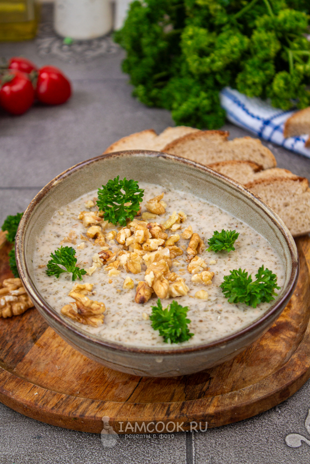По желанию, посыпьте готовый паштет рублеными грецкими орехами. Приятного аппетита!