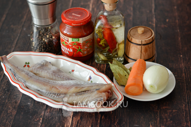 Соберите все необходимые продукты для приготовления диетической рыбы под маринадом (ПП).