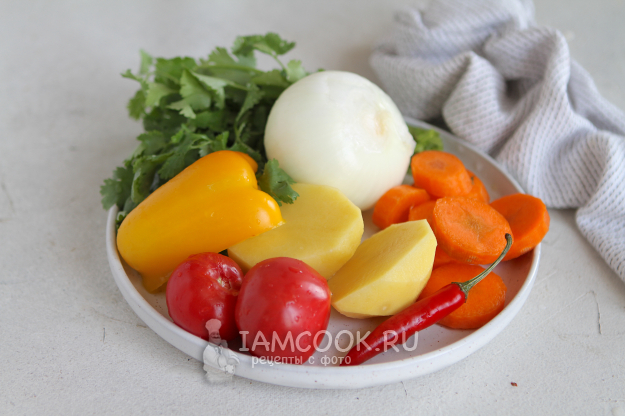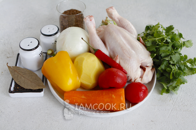 Перед вами весь набор ингредиентов, который нам понадобится для приготовления шурпы из курицы в казане.