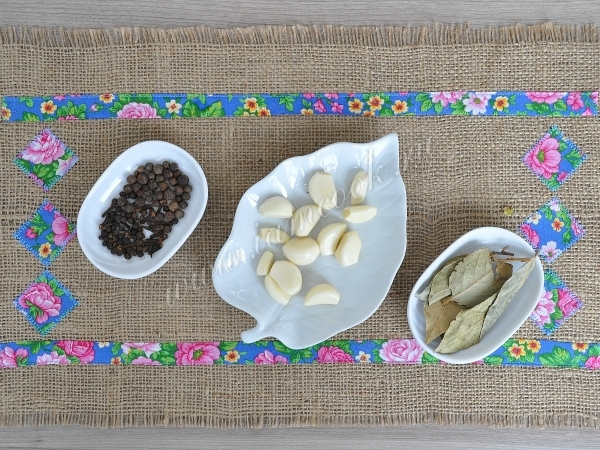 Приготовим специи и начистим чеснок.