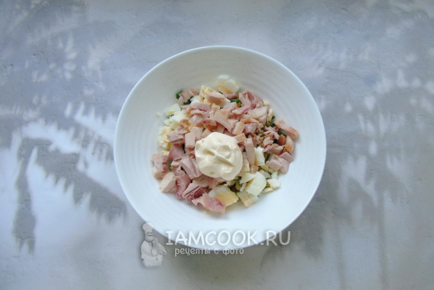 Салат заправьте майонезом.