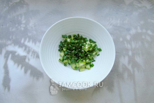 Зеленый лук помойте и мелко нарежьте.