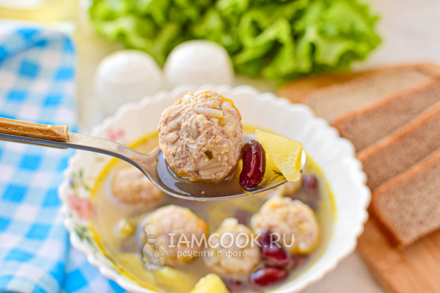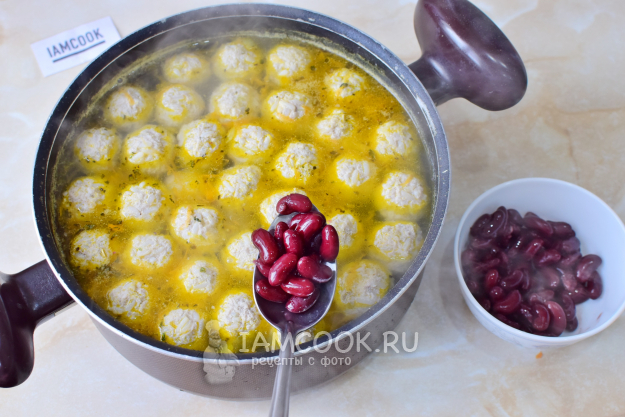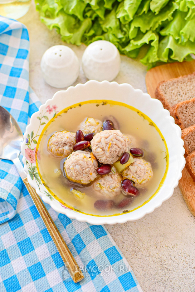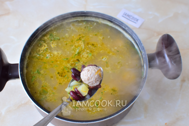 Можно добавить немного свежей зелени. Готовый суп с фрикадельками и консервированной красной фасолью снимите с огня, разлейте по тарелкам и подавайте к столу.