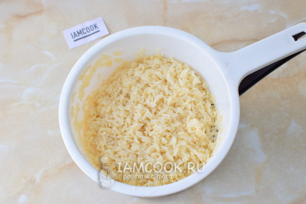 Рис отварите в кипящей воде до мягкости. На это уйдет 12-15 минут. Готовый рис откиньте на дуршлаг и пролейте холодной водой.