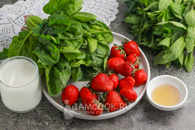Продукты для смузи из клубники и шпината на кефире - перед вами!