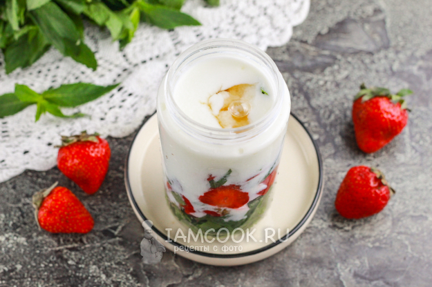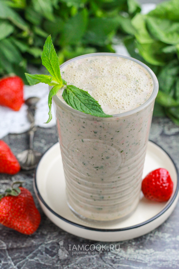 Перелейте кефирный смузи со шпинатом и клубникой в стакан или чашку и украсьте по вкусу. Дегустируйте с наслаждением.