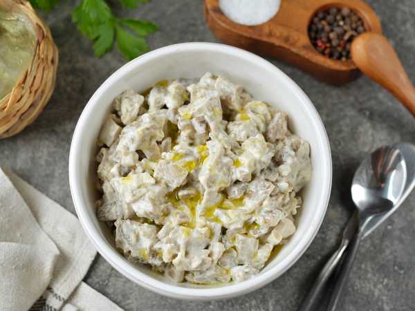 Подается блюдо к столу охлажденным, когда оно напитается всеми миксами вкусов и ароматов.