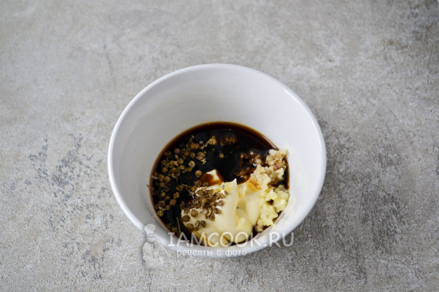 Соберите продукты для приготовления соуса для шаурмы с соевым соусом.
