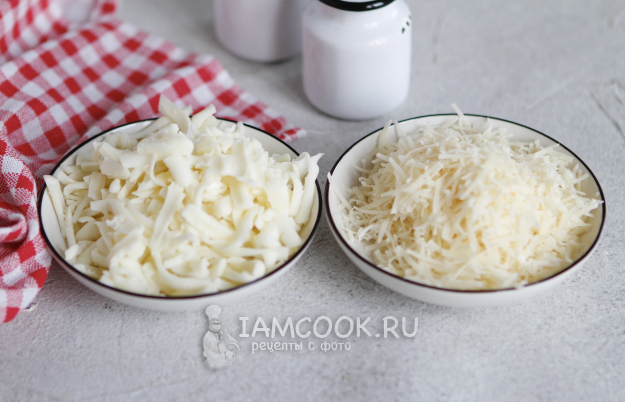 Присыпаем наши заготовки двумя видами сыра.