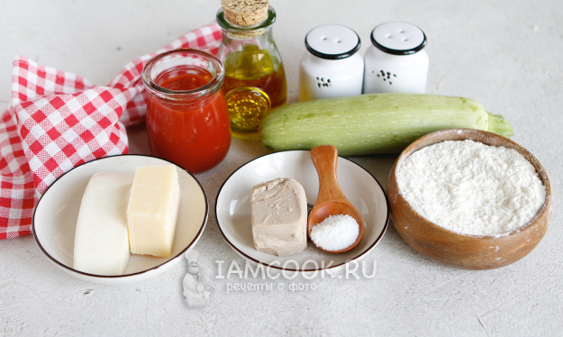 Соберем все ингредиенты для приготовления пиццы с кабачком (цукини).