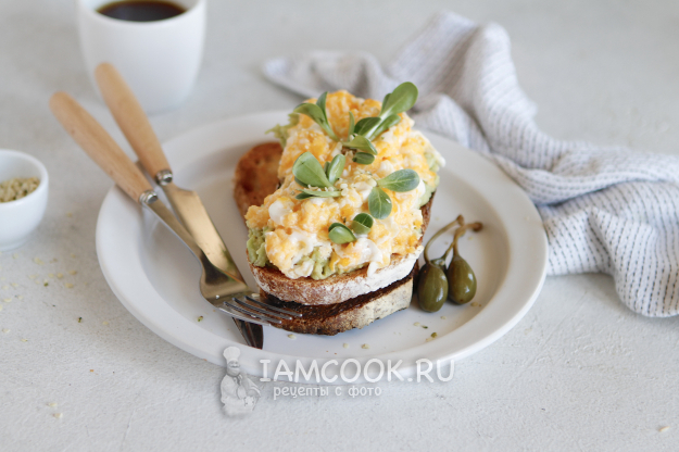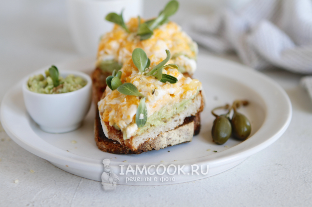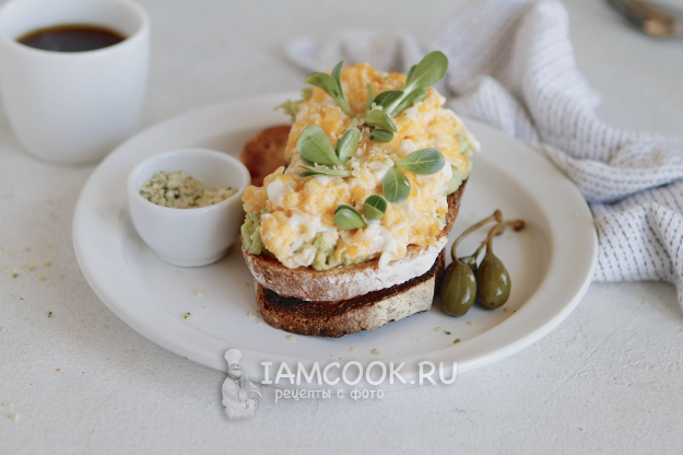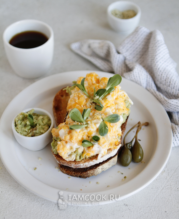 Подать такой вкусный завтрак можно по-разному. Приготовить скрэмбл, нарезать авокадо дольками, выложить все ингредиенты на тарелку, и, вуаля, быстрый завтрак готов.