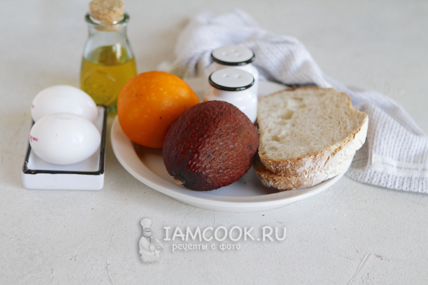Соберите все ингредиенты для приготовления скрэмбла с авокадо.