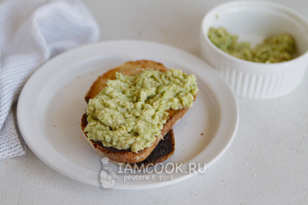 На кусочек хлеба выкладываем авокадо. Второй кусочек хлеба я больше использую для атмосферности. Ну и он, безусловно, пригодится, доедала с ним пасту из авокадо.
