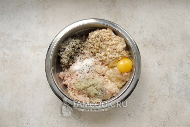 Добавьте яйцо, соль, перец черный молотый и ваши любимые специи.