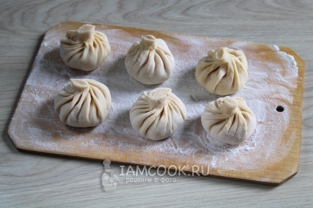 Выкладывайте заготовки хинкали на присыпанную мукой досочку.