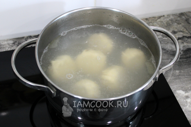 Варите хинкали так, чтобы в кастрюле они были в один слой. Воду или бульон (тут он из кончиков куриных крылышек) доведите до кипения, слегка посолите и забрасывайте хинкали аккуратно по одной штуке. После их всплывания убавьте кипение до умеренного, переверните хинкали хвостиками вниз и варите свежие 6-8 минут, а замороженные - 10-12 минут.