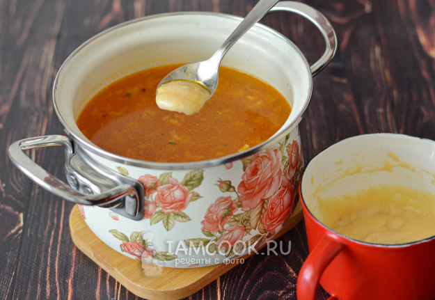 Заправка готова, тесто на клецки - тоже. Приступаем к варке супа.