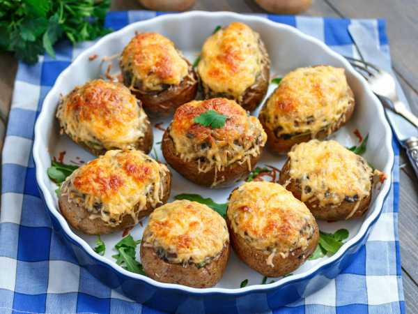 Картофельные "лодочки" нафаршируйте начинкой с беконом, выкладывайте с горкой.