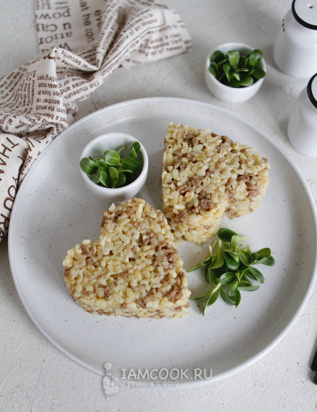 Раскладываем булгур с фаршем по тарелкам и подаем к столу.