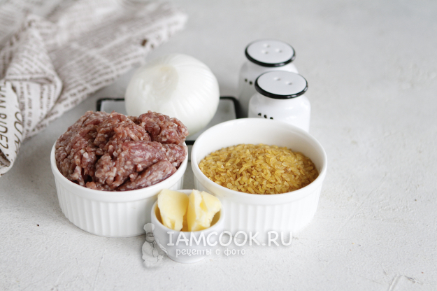 Перед вами все ингредиенты, которые нам понадобятся для приготовления булгура с фаршем в мультиварке.