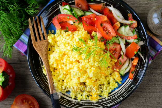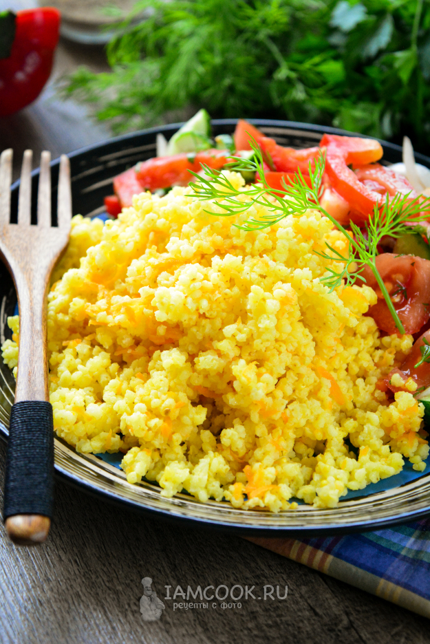 Соберите все продукты, необходимые для приготовления жареной пшенной каши.