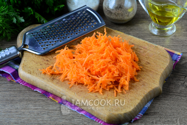 Почищенную морковь натрите на терке - терку возьмите любую.