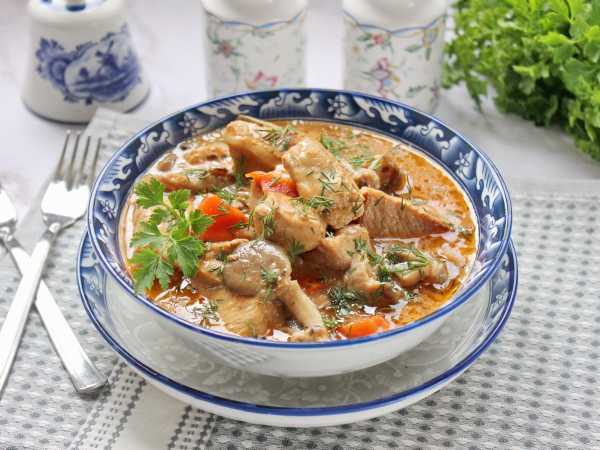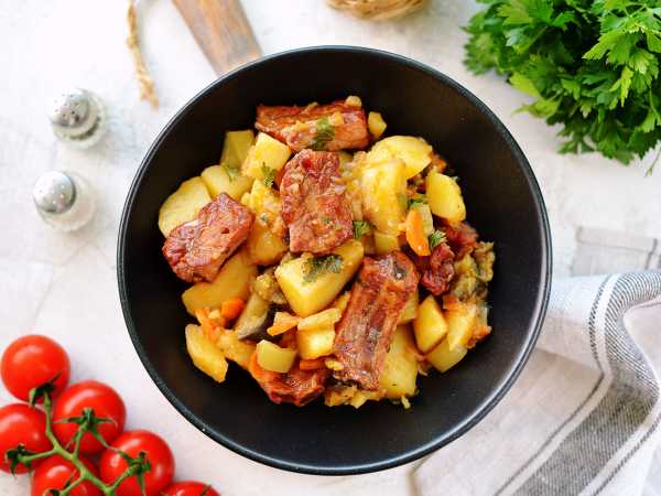 Из свиных ребрышек с грибами можно приготовить замечательное жаркое. Сочное, мягкое, вкусное мясо с большим количеством овощей и грибов отлично подойдет и на праздничный стол. Специи для маринада берите по вкусу.