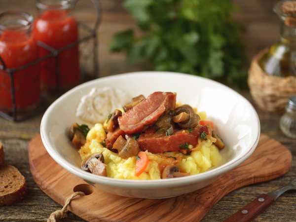 Свиные ребрышки с грибами в духовке, рецепт с фото