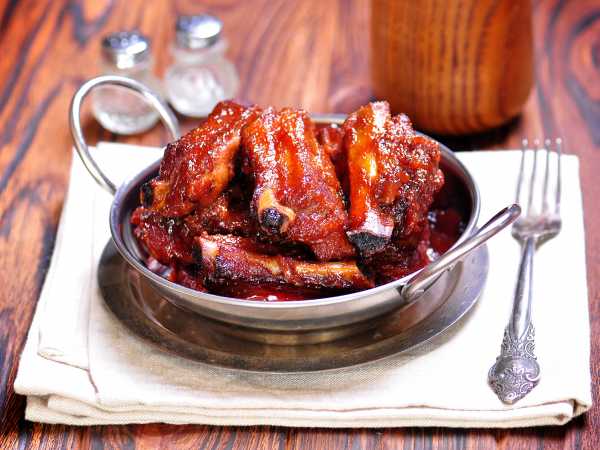 Свиные ребра помойте и высушите бумажным полотенцем.