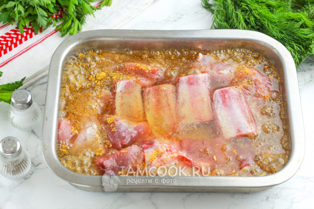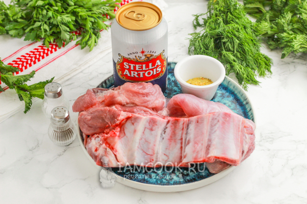 Продукты для приготовления свиных ребрышек в пиве в духовке - перед вами!