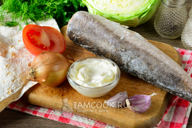 Соберите все необходимые продукты для приготовления шаурмы с рыбой. Рыбу заранее разморозьте.