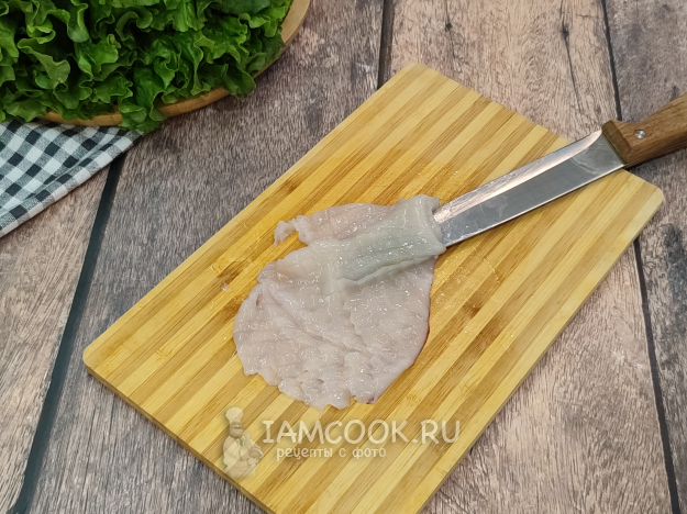 Очищенных кальмаров нужно отварить. Я для красоты делаю на тушках надрезы в виде сеточки, потом режу на квадратики-ромбики. Но можно нарезать их и просто колечками, тоже красиво будет😊).