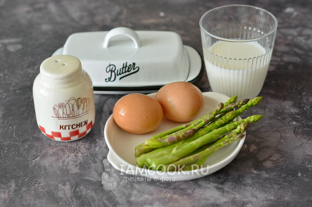 Всё, что вам потребуется для приготовления омлета со спаржей на сковороде, - на фото ниже.