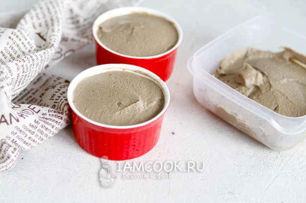 Часть паштета я разложила по небольшим креманкам, у меня получилось 2 шт. И немного в герметичный контейнер, который я благополучно отправила в морозильную камеру. Да-да, за день-два и даже три мы весь паштет не съедаем, он приедается. И чтобы продукт не испортился и его не выбрасывать, я готовый паштет замораживаю. Размораживаю паштет в холодильнике, достаю его с вечера и отправляю на верхнюю полку холодильника. После заморозки паштет сохраняет свое качество и нисколько не теряет во вкусе.