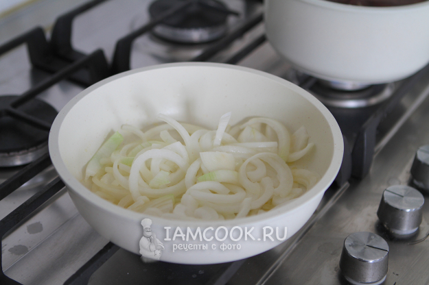 Припустить его до мягкости на жире из-под костного бульона. Я обжаривала лук на среднем огне примерно 7 минут.