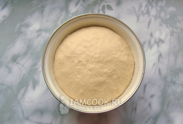 Накройте миску с тестом пищевой пленкой и поставьте в теплое место. Через час-полтора оно увеличится в объеме.