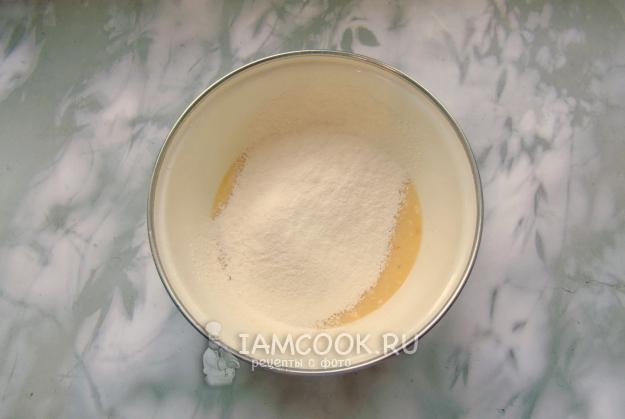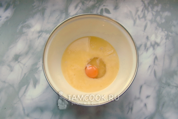 Добавьте яйцо, сахар, ванильный сахар и соль.