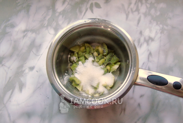 Этот фрукт очень сочный и достаточно кислый. Поэтому в начинку нужно добавить сахар. Но если киви просто перемешать с сахаром и начинить пирожки, то в процессе выпекания фрукт пустит много сока и пирожки потекут. Поступите следующим образом: в кастрюлю с киви насыпьте сахар по вкусу и крахмал.