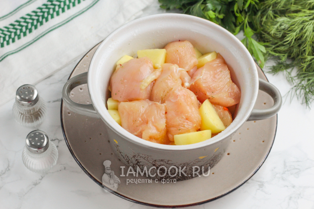Продукты для приготовления куриных грудок с картошкой в горшочках в духовке - перед вами!
