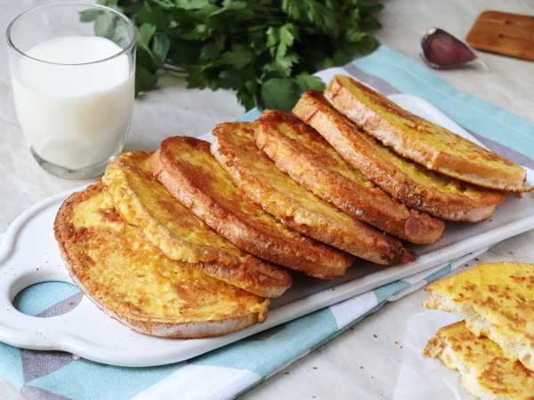 В полученную смесь опустите по очереди ломтики батона или хлеба и дайте им хорошо пропитаться.