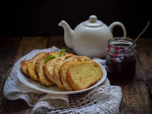Возьмите ингредиенты для приготовления гренок в яйце в микроволновке.